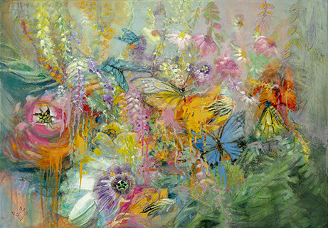 Rhapsody in Blue Roses and Bleeding Hearts 26 x 20cms £480