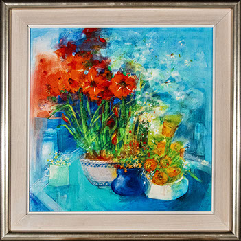 Rhapsody in Blue Roses and Bleeding Hearts 26 x 20cms £480